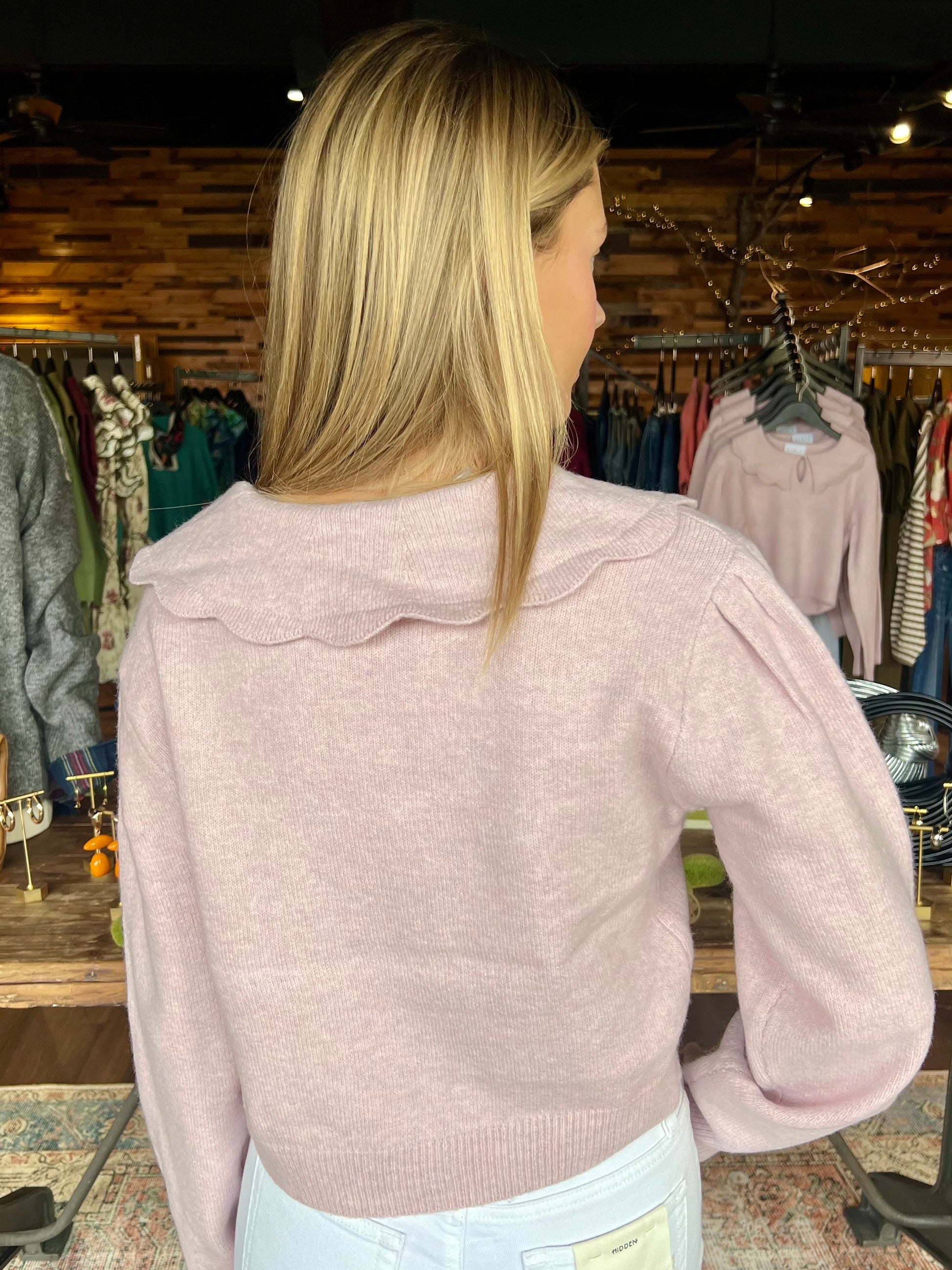 Scallop collar sweater.